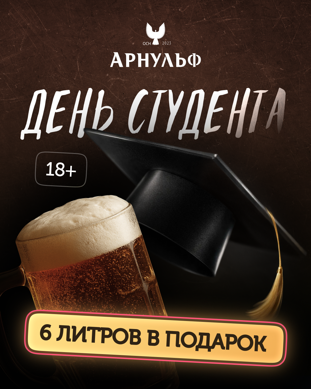 Покажите чек с номером заказа бармену и получите 6 литров пива Арнульф 3412 в подарок! 🍻